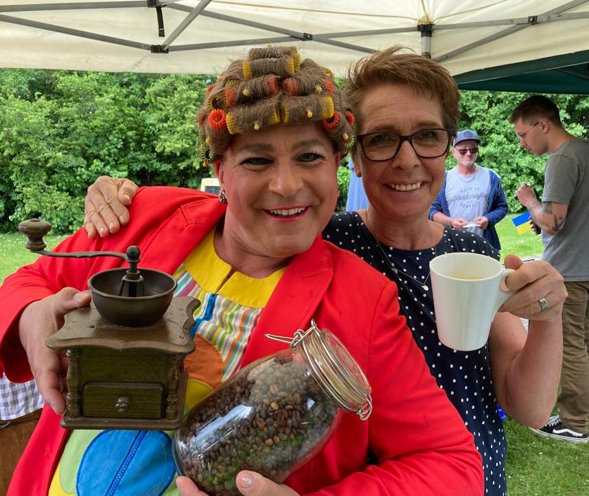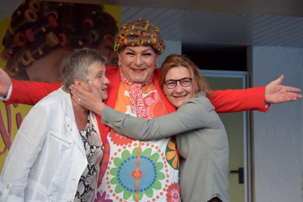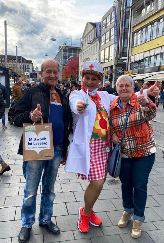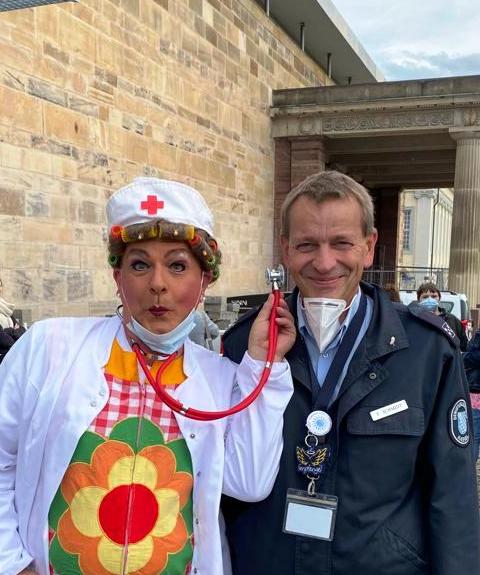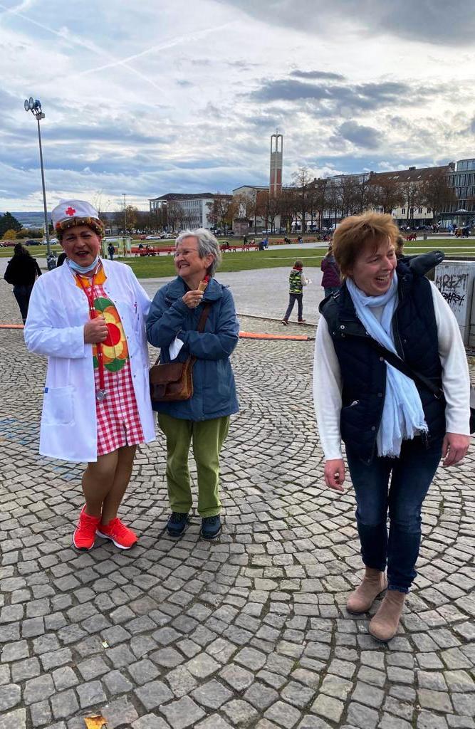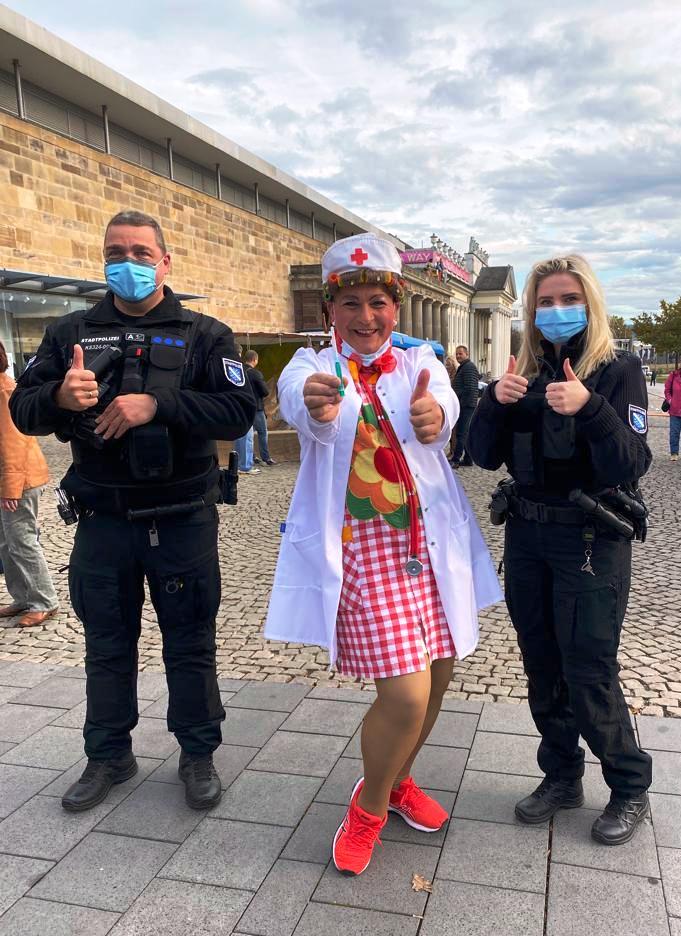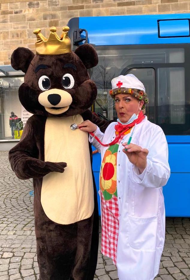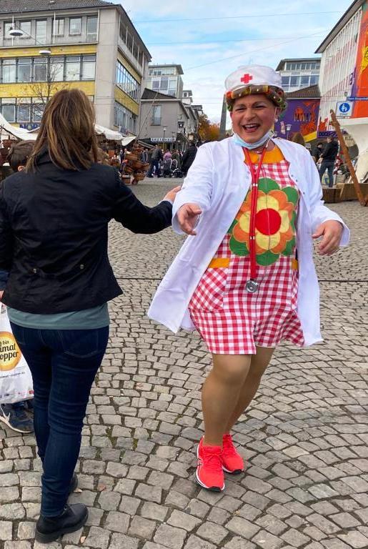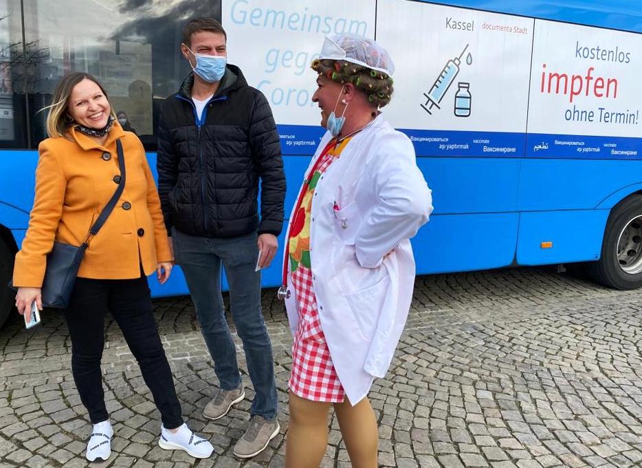 Wer sich impfen lässt, hat gut lachen: Schwester Lilli besuchte am Nachmittag den Impfbus auf der Casseler Herbst-Freyheit. Die Corona-Schutzimpfung als kostenlose Erst-, Zweit- und Drittimpfungen. Gute Laune vorm Impfbus dank Lilli - und im Impfbus dank Impfteam!