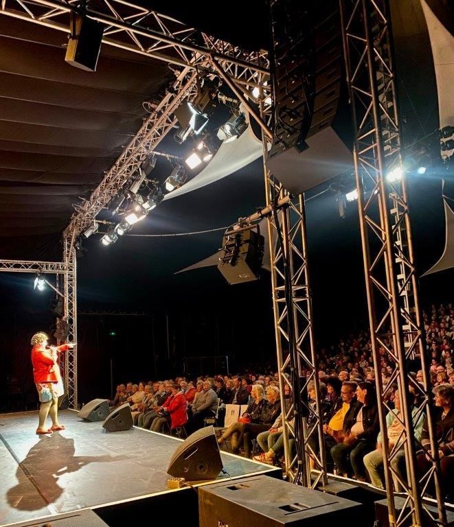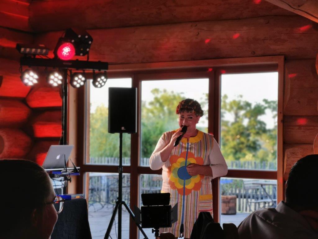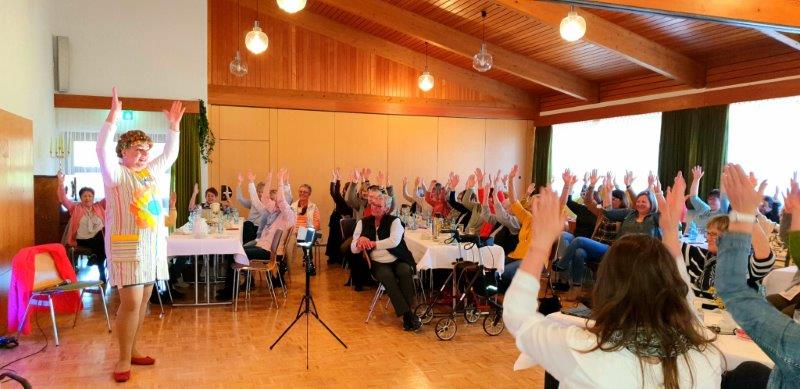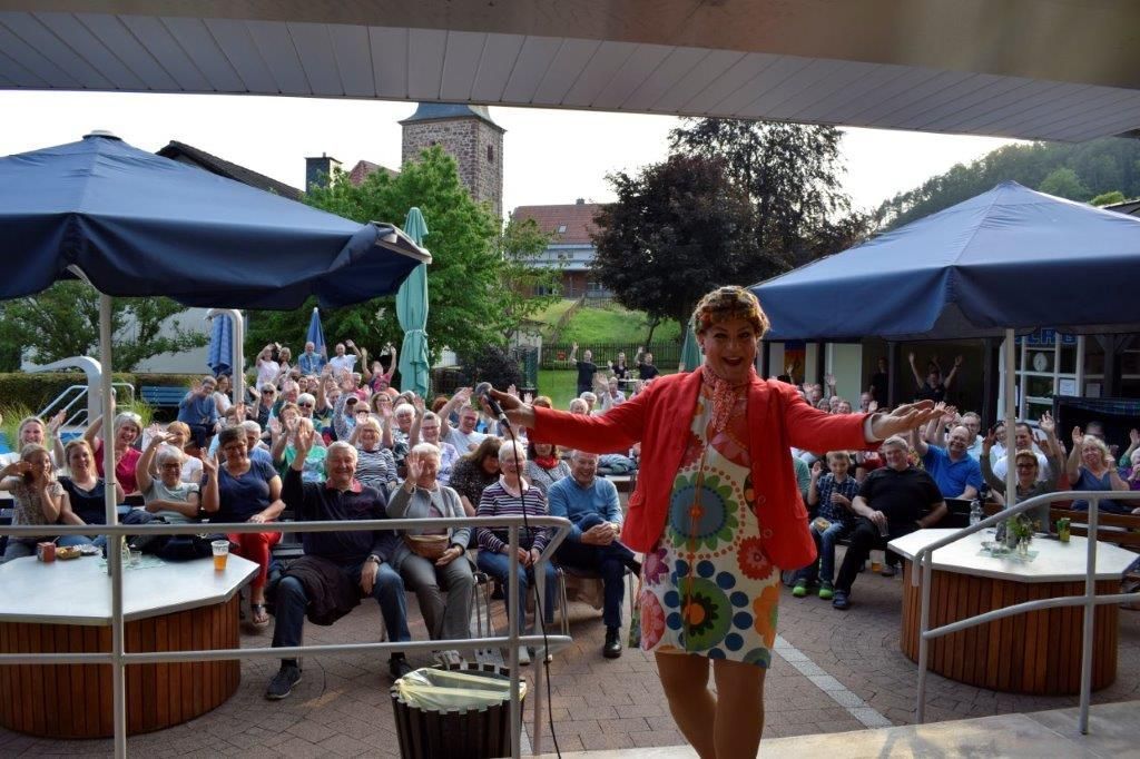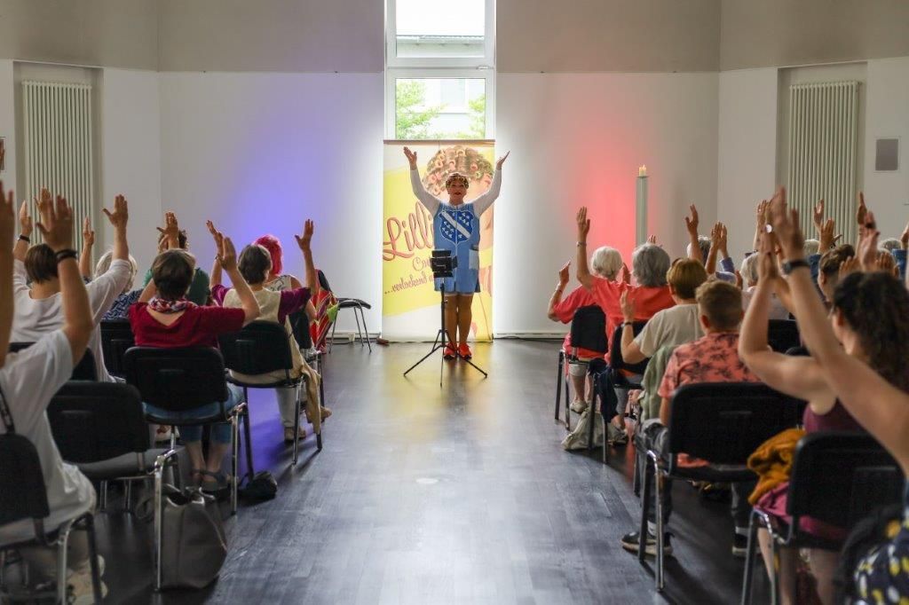 Die großen majestätischen Tiere ließen auch nicht lange auf sich warten und waren viel fotografierte Motive des Abends. Den Elchen konnte nur noch „Lilli“ die Show stehlen, was sie auch spielend und singend tat. Mit erfrischendem Wortspiel, Slapstick und witzigen Schlagerparodien brachte sie jeden und jede zum Lachen.
