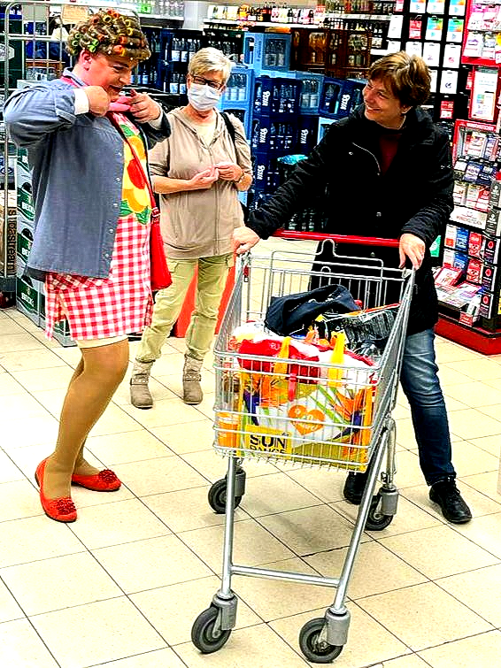 Da haben Kunden und Angestellte aber gestaunt. Ist das etwa die neue Mitarbeiterin? Na, dann wird´s jetzt aber lustig!