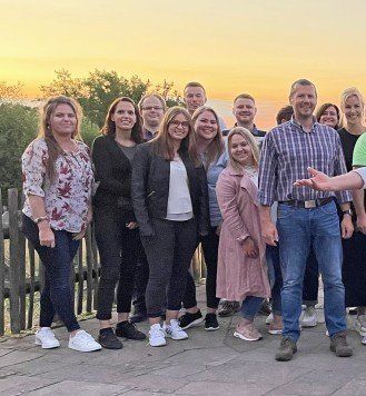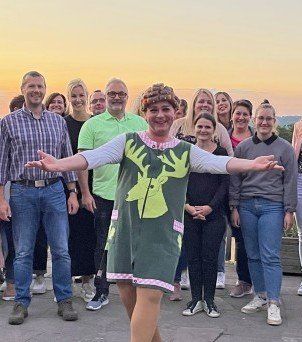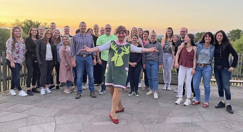 Umrahmt von der traumhaften Kulisse des Reinhardswaldes feierte das Team bei leckerem Barbecue, eiskalten Mix-Getränken und flotten Rhythmen in der Elch-Lodge im Tierpark Sababurg mit Blick auf das große Elch-Gehege.